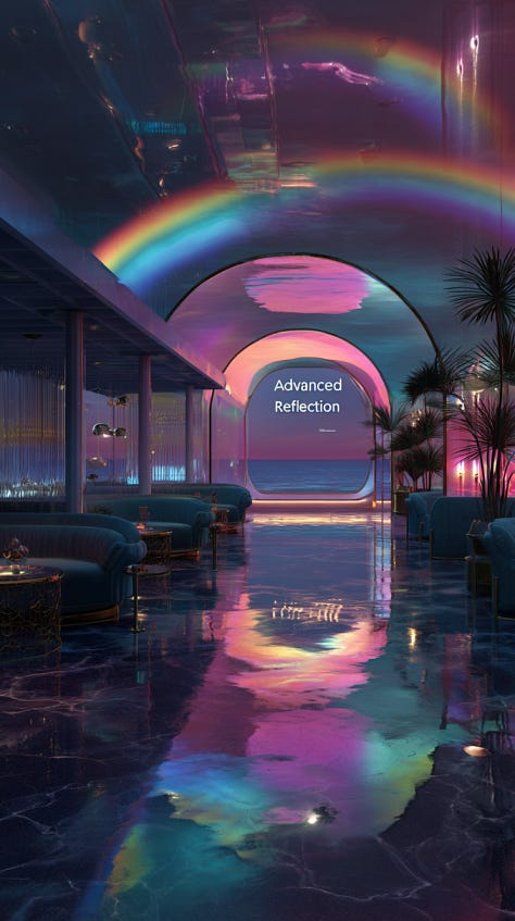 After your last mignardises and final digestif pairing selections; you’re provided advanced lenswear not only for eye protection, but to observe the holographic 5-dimensional moonlit projections. The Prisma Albedo Gondola levitates you over the brightest most light reflecting fields on the moon’s surface with 360 views of all the theatrics. The prismatic projections play out motions of collective dramas, truths, myths, rites, rituals, even ancient hieroglyphics!